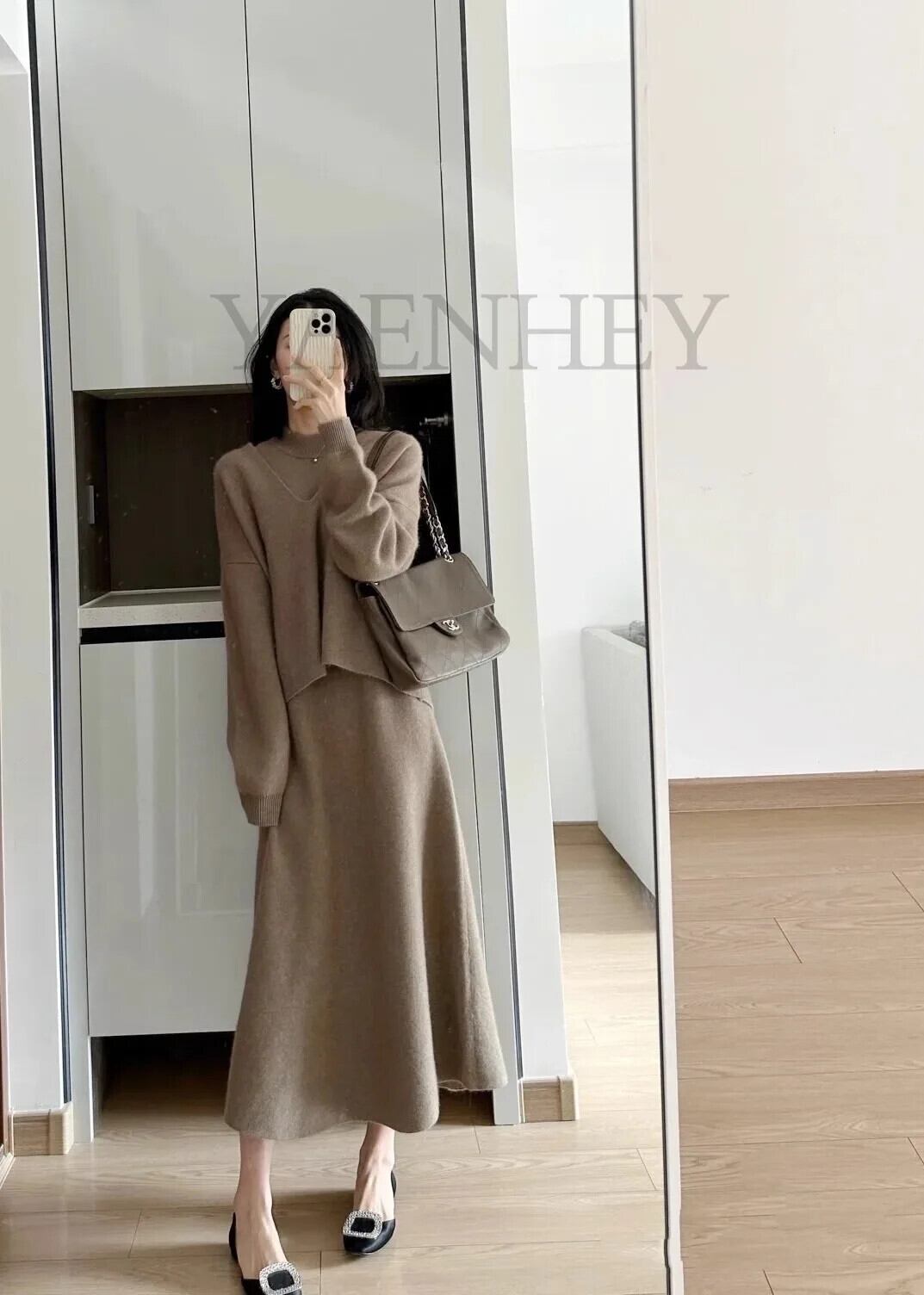 送料無料 秋冬 2024 フレンチフルニットセーター e ボディコンミディドレススーツ 2 点セットレディース衣装フェスティバル オータム 秋物 ウィンター 冬物 AE008878716254805324