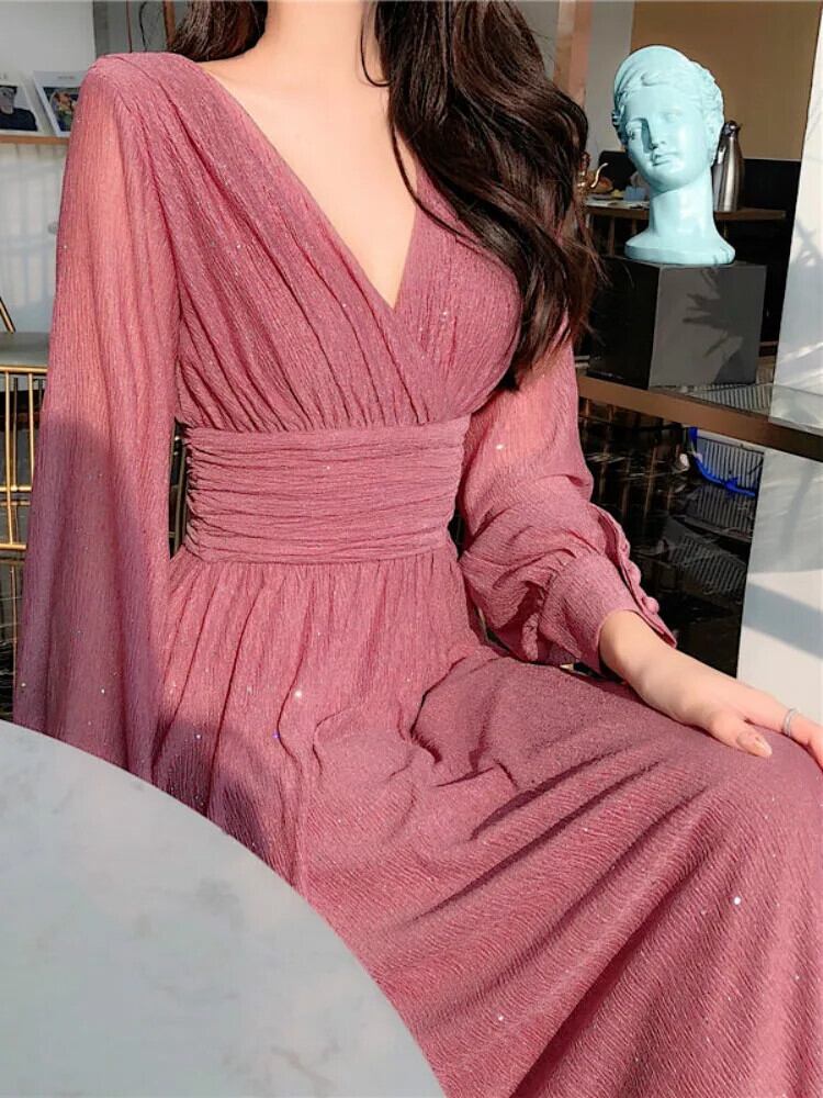 送料無料 ヴィンテージセクシーなマキシドレス女性パーティースパンコールミディドレスシフォンスリム女性ドレス秋 2022 オータム 秋物 ビンテージ AE008878736843289563