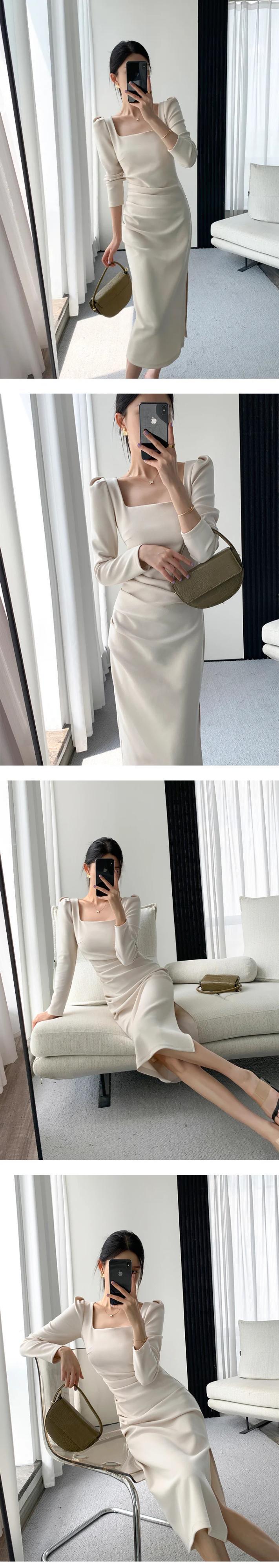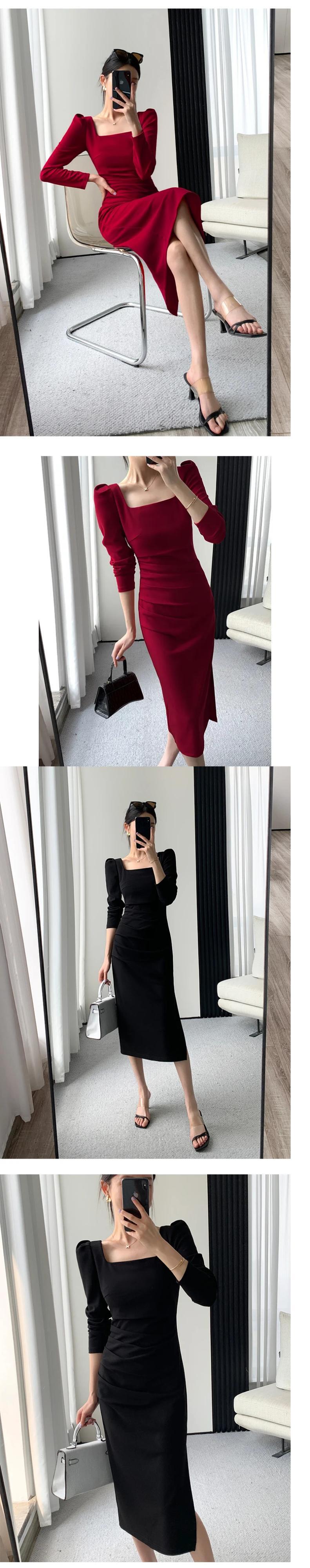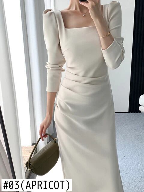 送料無料 スクエアカラーソリッドウェディングマキシドレス女性オフィスレディボディコンミディドレス服秋 2022 ローブ オータム 秋物 ソリッドカラー スクウェア 会社 学校 通勤や通学にも AE008878744240243322