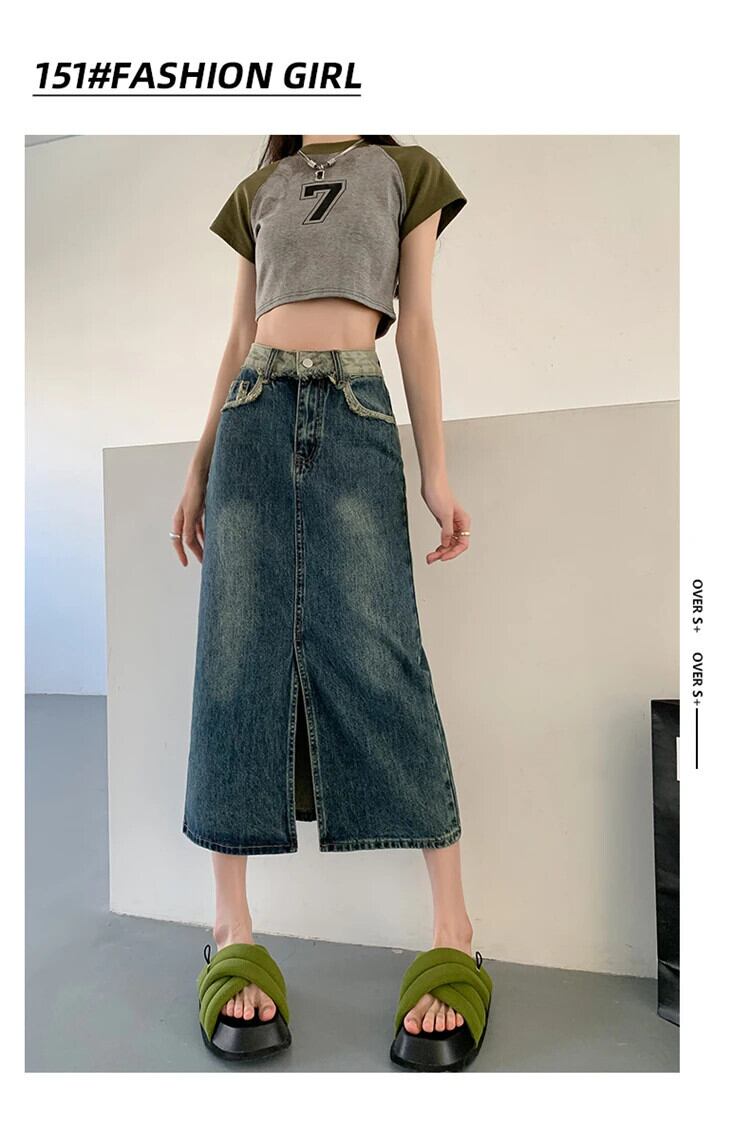 送料無料 原宿ミディスカートスプリット k Y2k だぶだぶヴィンテージデニムロングスカート女性ストリート夏 かわいい サマー 夏物 ビンテージ AE008878777263407800