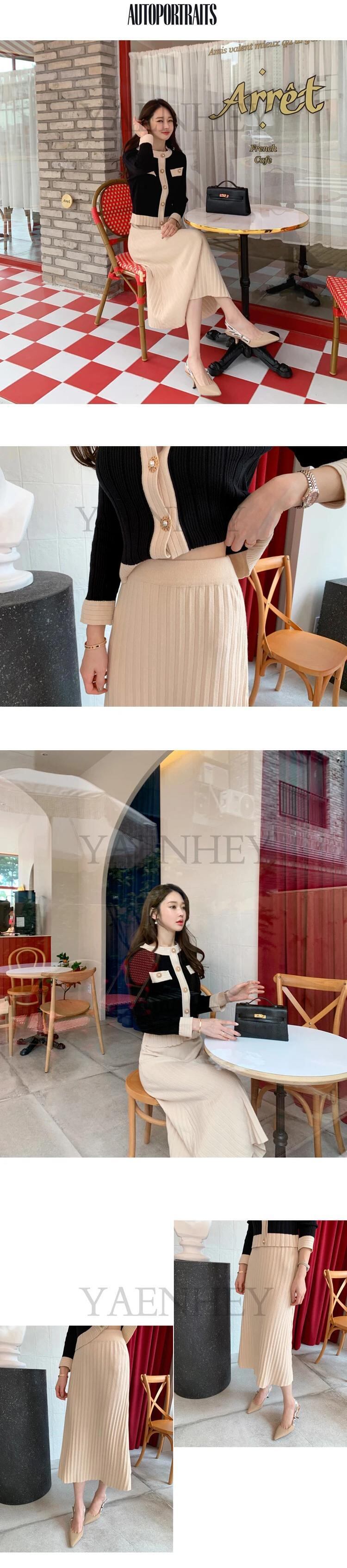 送料無料 ヴィンテージ秋 2023 2 ツーピースセットセクシーな O ネックボタン長袖ニットセーター + ニットスカートパーティーセット女性 ロング オータム 秋物 Oネック ビンテージ AE008878752451127502