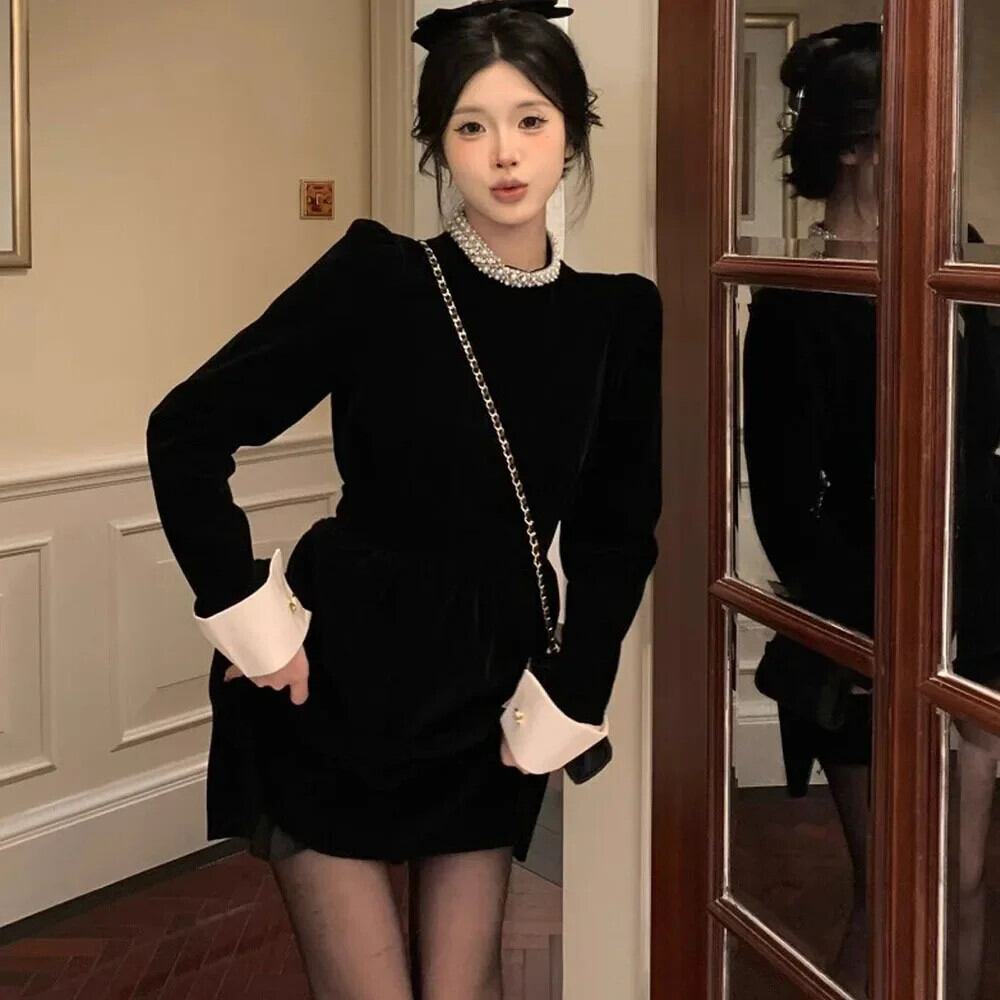 送料無料 ヴィンテージ気質パール O ネックブラックベルベットドレス女性パーティーイブニングドレス春 2024 スプリング 春物 Oネック 真珠 ビンテージ AE008878722647076946 | 女性の為の通販サイト-fashion navi