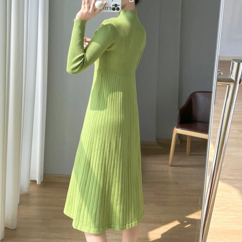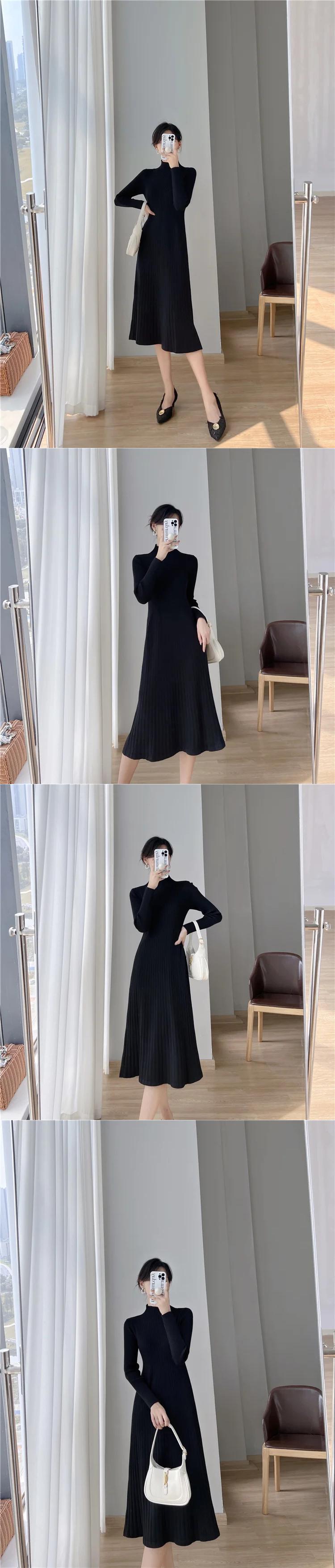 送料無料 長袖ボディコンドレス女性パーティー半襟ニットセーター暖かいミディドレス秋冬 2023 ロング オータム 秋物 ウィンター 冬物 AE008878744870764741