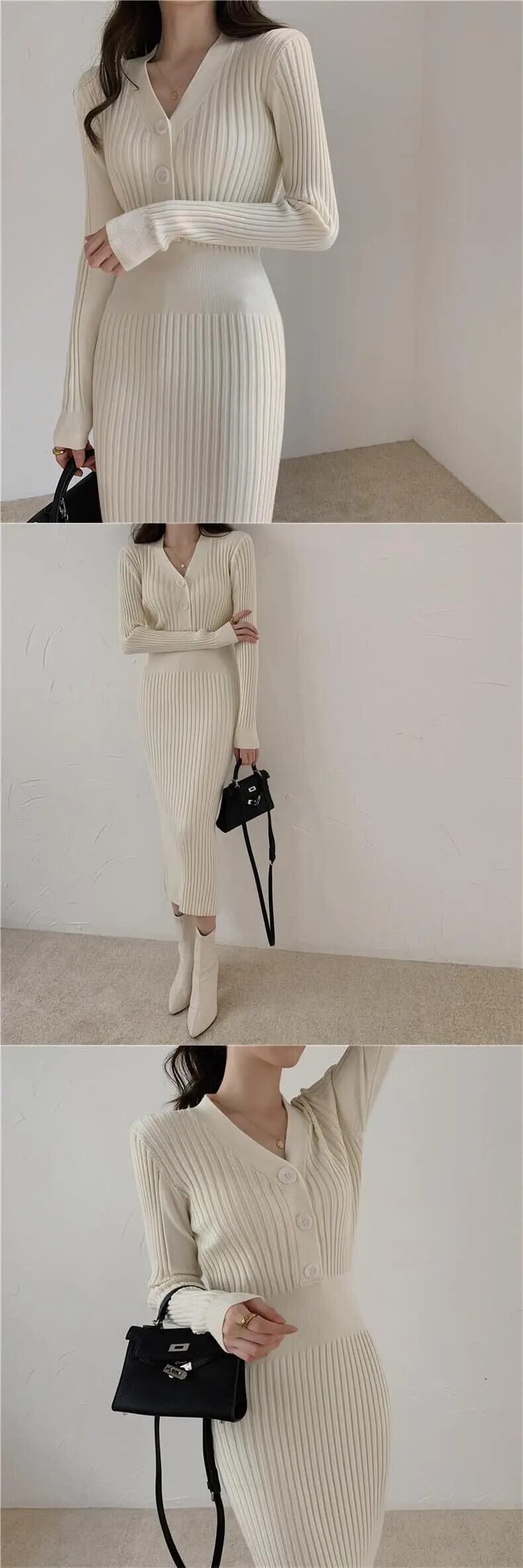 送料無料 ヴィンテージニットセーター長袖ドレス女性スリムボディコン秋冬ボタン V ネックセーターミディ女性ドレス ロング ウィンター 冬物 Vネック ビンテージ AE008878799391426067