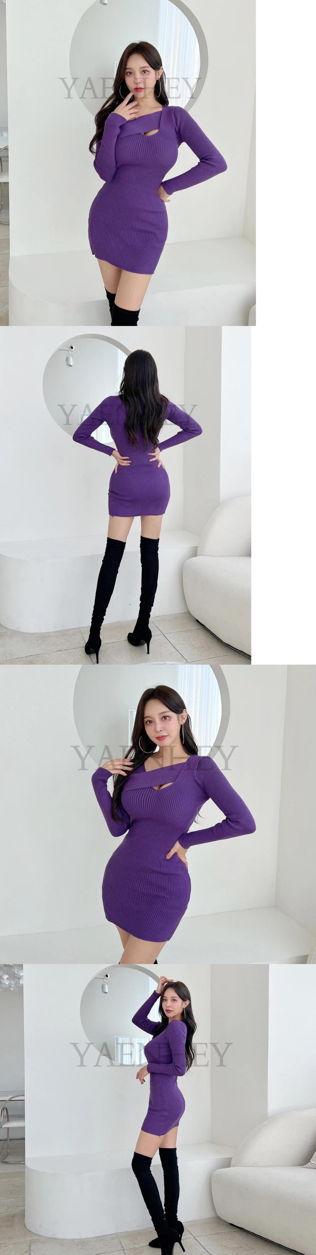 送料無料 ヴィンテージセクシーなニット斜め襟ミニドレスニットセーターボディコンドレス女性春 2024 スプリング 春物 ビンテージ AE008878736755443994