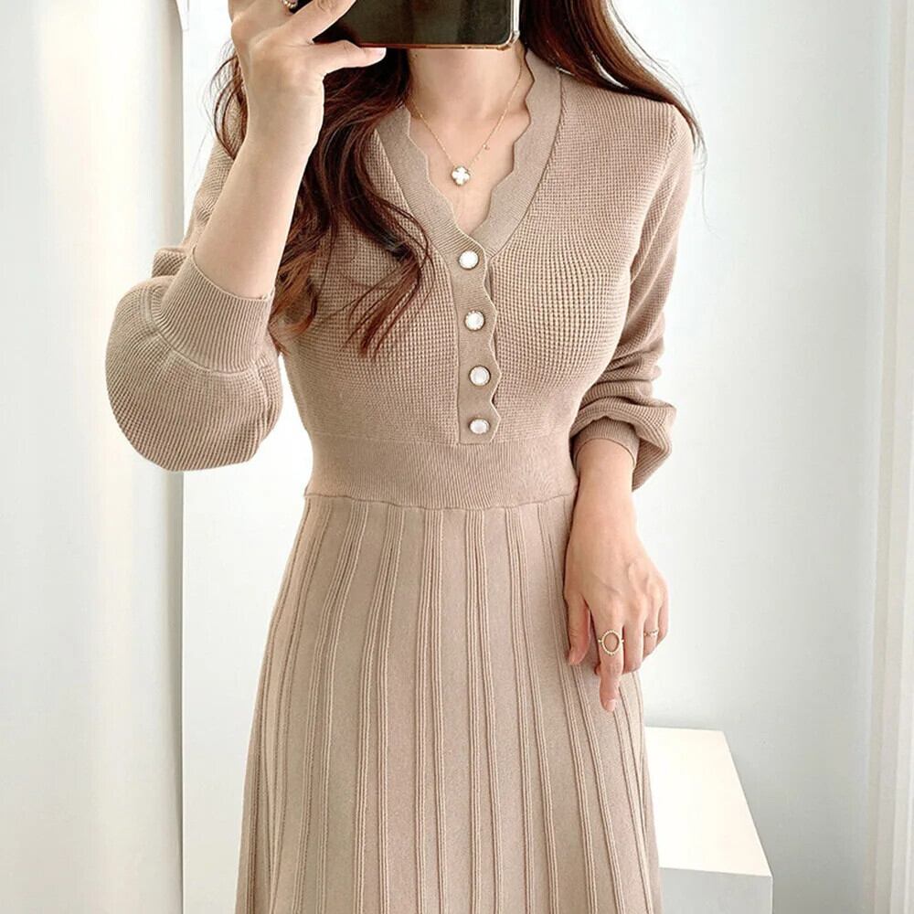 送料無料 ヴィンテージウエストソリッドカラーシンプルドレス V ネック長袖ドレス女性黒ニットドレス服 ロング ブラック Vネック ビンテージ AE008878799987722122