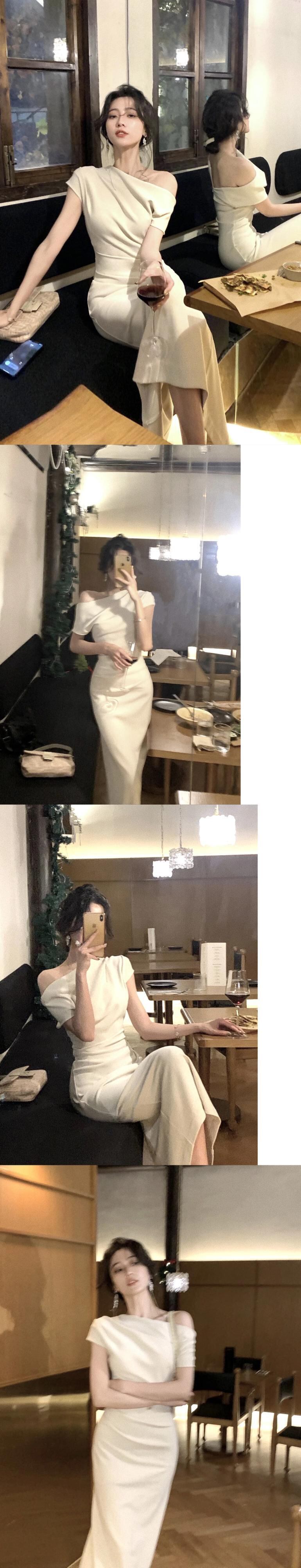 送料無料 ヴィンテージワンショルダーひだ夏ノースリーブボディコンドレスシックなパーティーイブニングウェディングドレス女性 サマー 夏物 ビンテージ AE008878740107636612