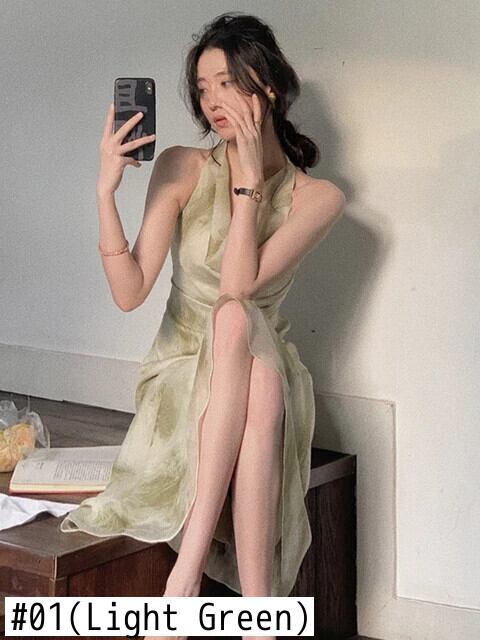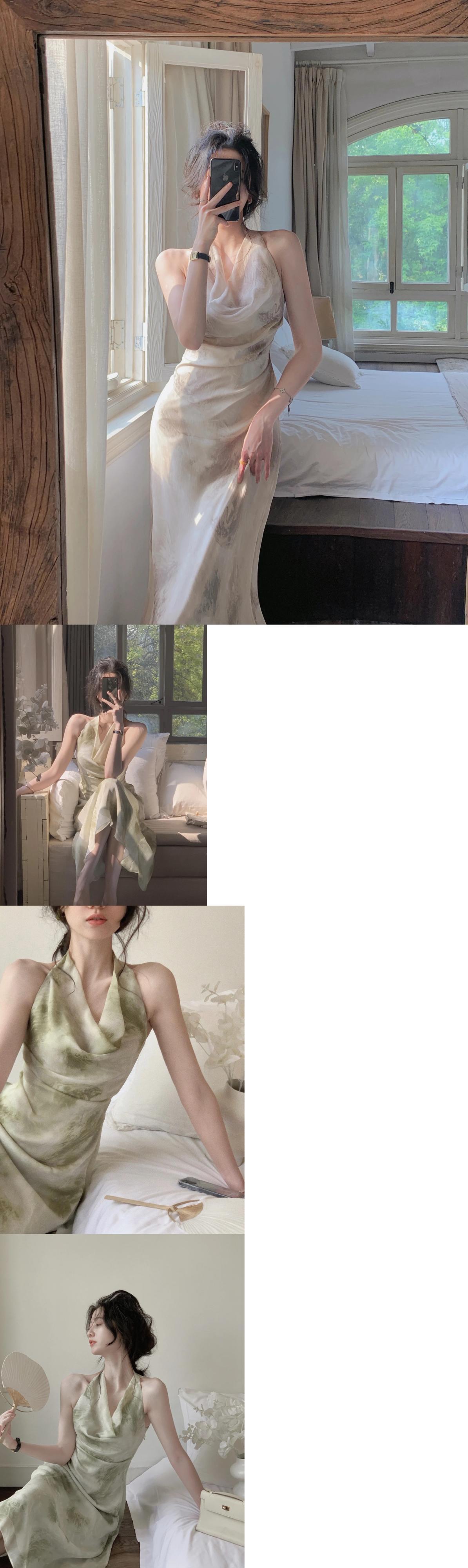 送料無料 ヴィンテージセクシーなノースリーブネックマウントパーティーマキシドレス女性ホルタースパゲッティストラップ折りミディドレス夏 サマー 夏物 ビンテージ AE008878760956171356
