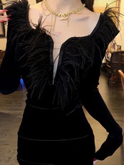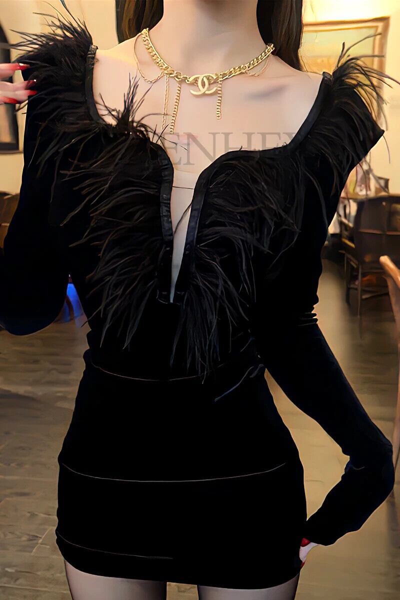 送料無料 長袖セクシーなクラブディープ V ネックボディコン結婚式のイブニングマキシドレスの女性の冬 2023 ベルベットミニドレスパーティー衣装 ロング ウィンター 冬物 Vネック AE008878752725903082