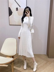 送料無料 長袖パーティーニットミディドレス女性ボタン半襟ニットセータードレス秋冬 2023 ロング オータム 秋物 ウィンター 冬物 AE008878798176188278 | 女性の為の通販サイト-fashion navi