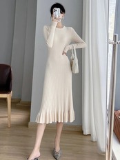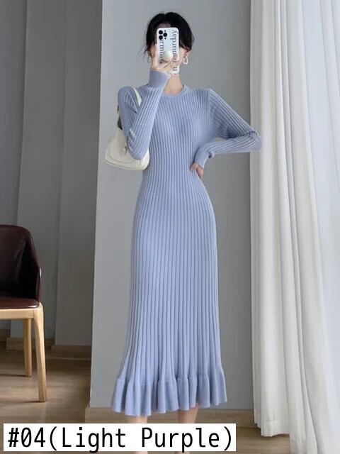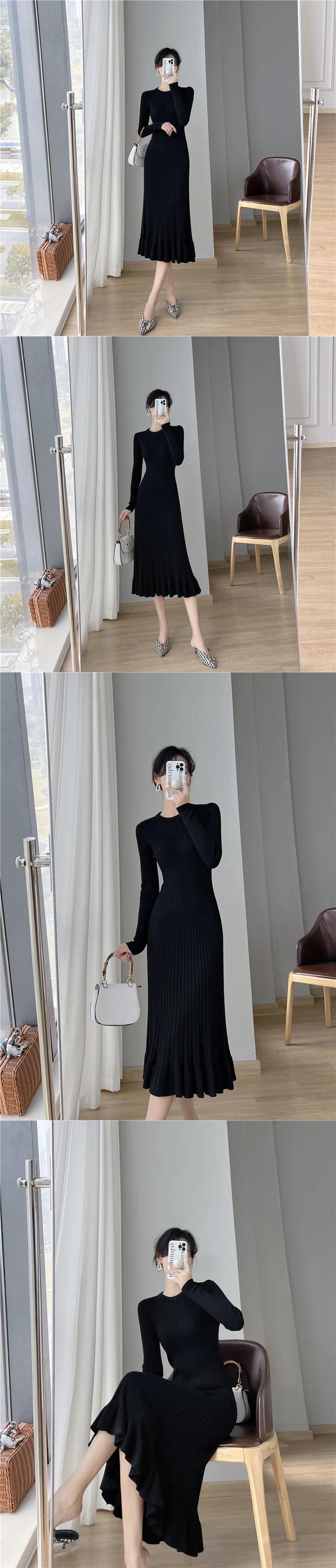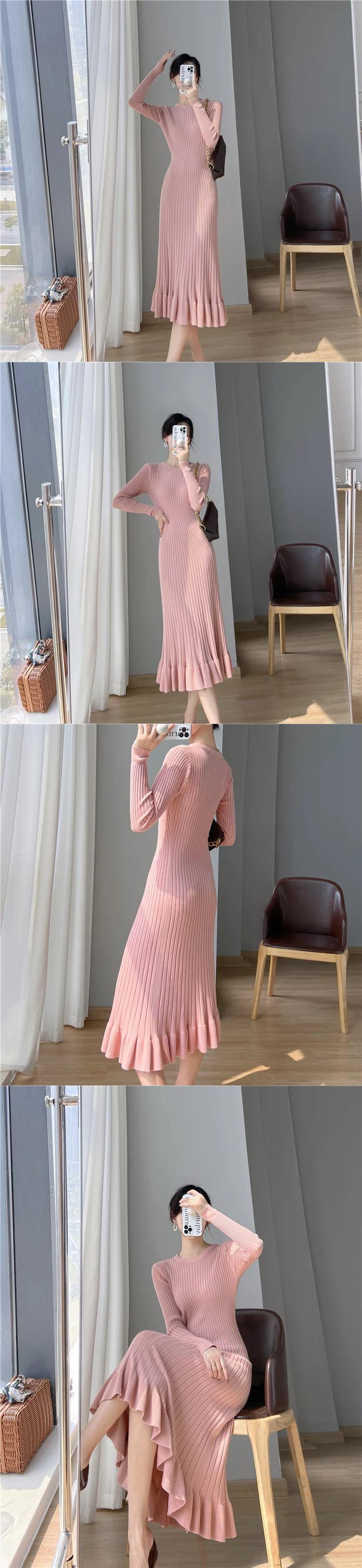 送料無料 厚いマーメイド O ネックロングセーターマキシドレス女性の A ラインスリムセクシーなニットドレス秋冬 2022 オータム 秋物 ウィンター 冬物 Oネック Aライン AE008878736589310635