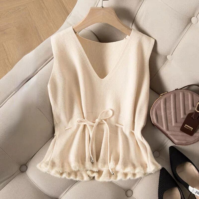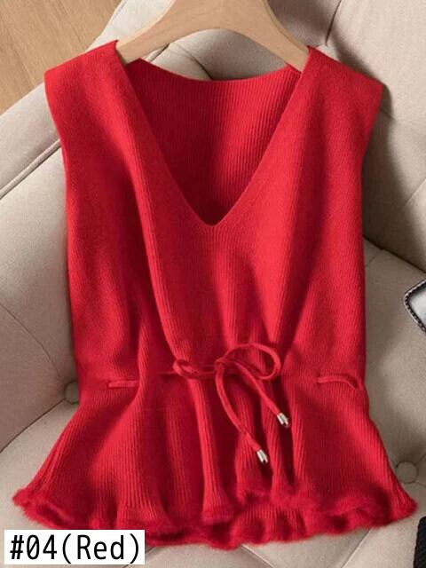 送料無料 女性のノースリーブベストセーター 2023 秋冬プルオーバー V ネックトップ固体ヴィンテージニットウェア暖かいインテリアジャンパー オータム 秋物 ウィンター 冬物 Vネック ソリッドカラー ビンテージ AE0807756361883812