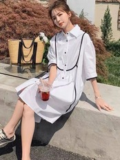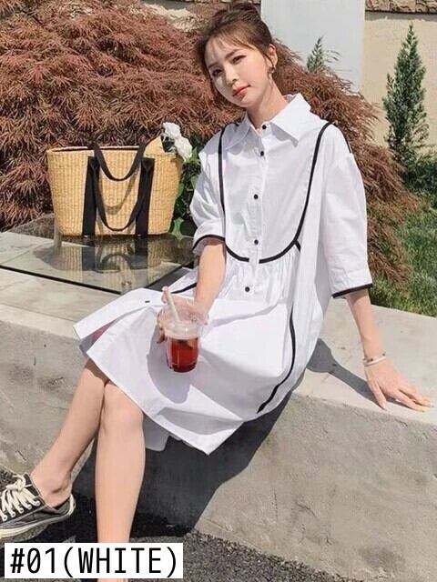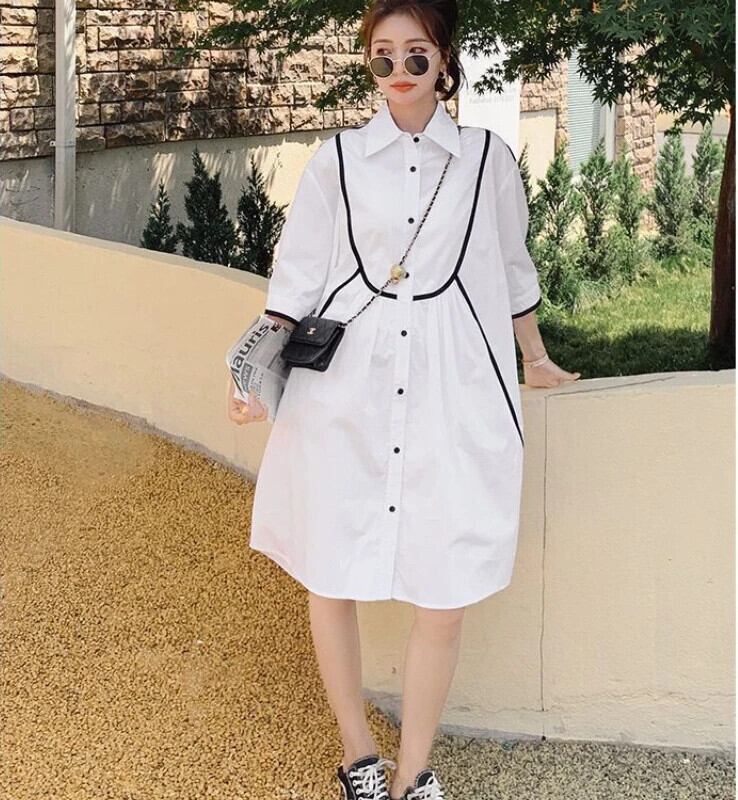 送料無料 夏の女性のドレス 2023 半袖特大シャツドレス女性ストリートルーズ膝丈白ドレス ショート ホワイト ハーフスリーブ サマー 夏物 AE0807786121463971