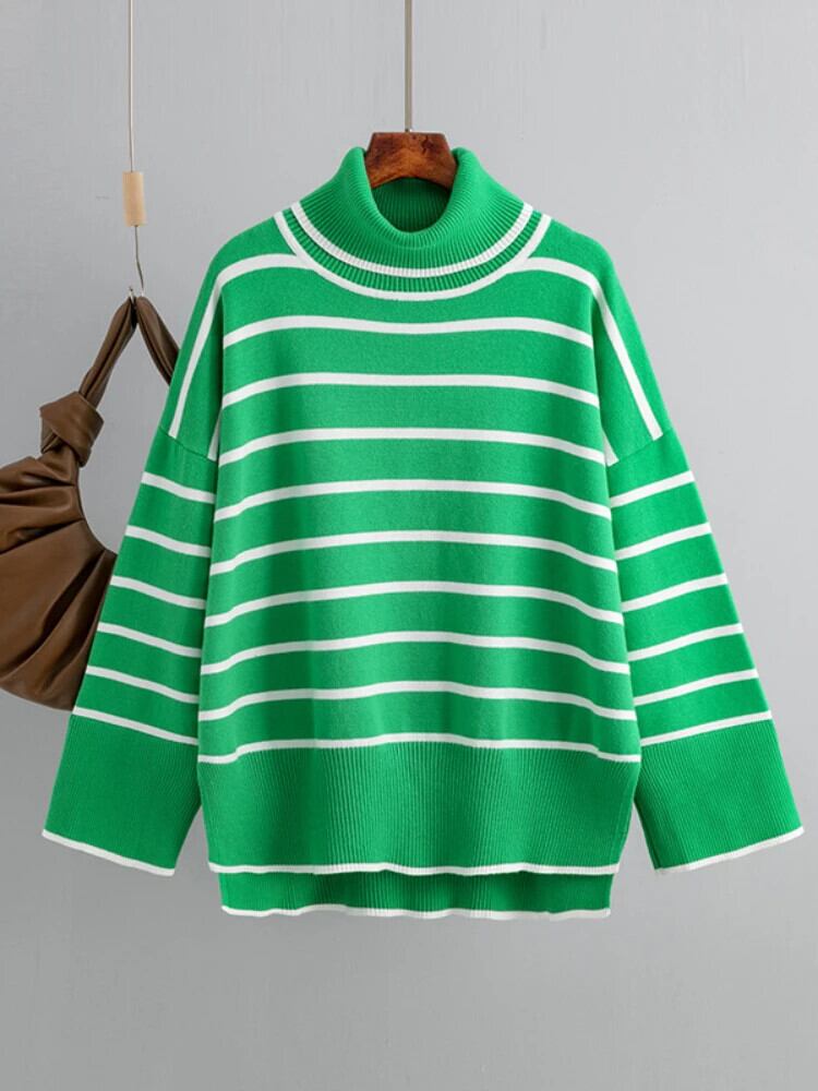 送料無料 2023 冬の女性のタートルネックセーター暖かいプルオーバー通勤トップレトロコントラストカラーストライプルーズ女性のトップ ウィンター 冬物 AE0807723935240855 | 女性の為の通販サイト-fashion navi
