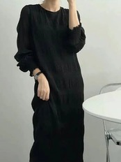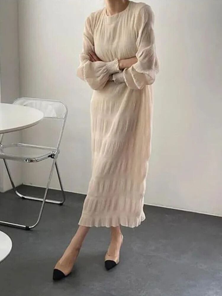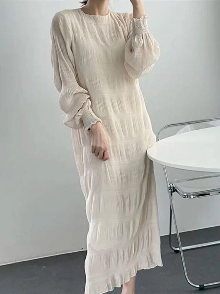送料無料 ドレス女性 2023 夏のパーティーロングドレス O ネック長袖ストリートヴィンテージドレス固体ローブ サマー 夏物 Oネック ソリッドカラー ビンテージ AE080776057042741