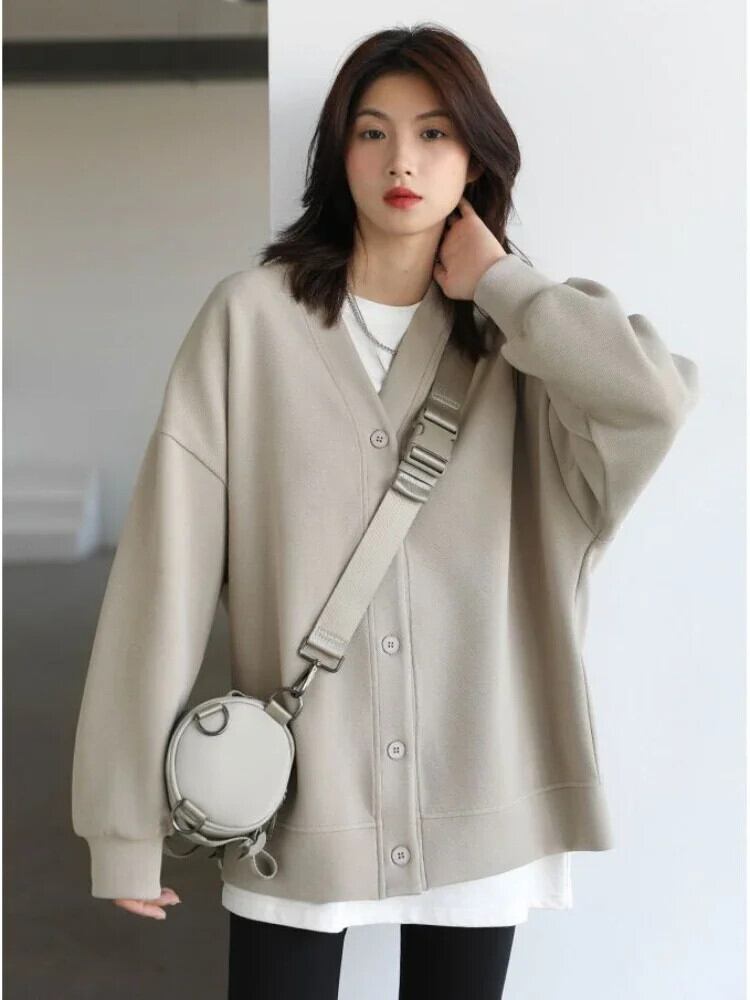 送料無料 コート女性 2023 春秋カーディガンジャケットオーバーサイズ女性コート V ネック固体オーバーコート スプリング 春物 オータム 秋物 Vネック ソリッドカラー AE0807731922088353