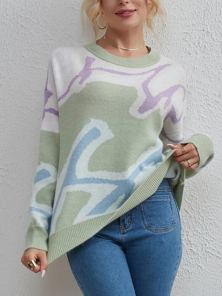 送料無料 女性セーター 2023 秋冬対照的な色プルオーバールーズ長袖トップ特大セーター ロング オータム 秋物 ウィンター 冬物 AE0807752858388780
