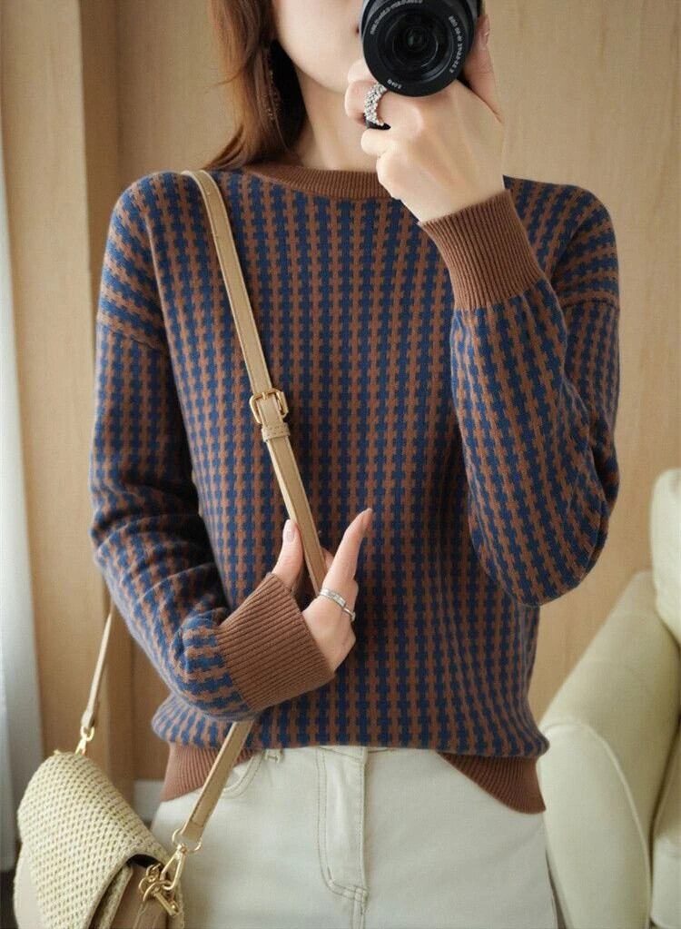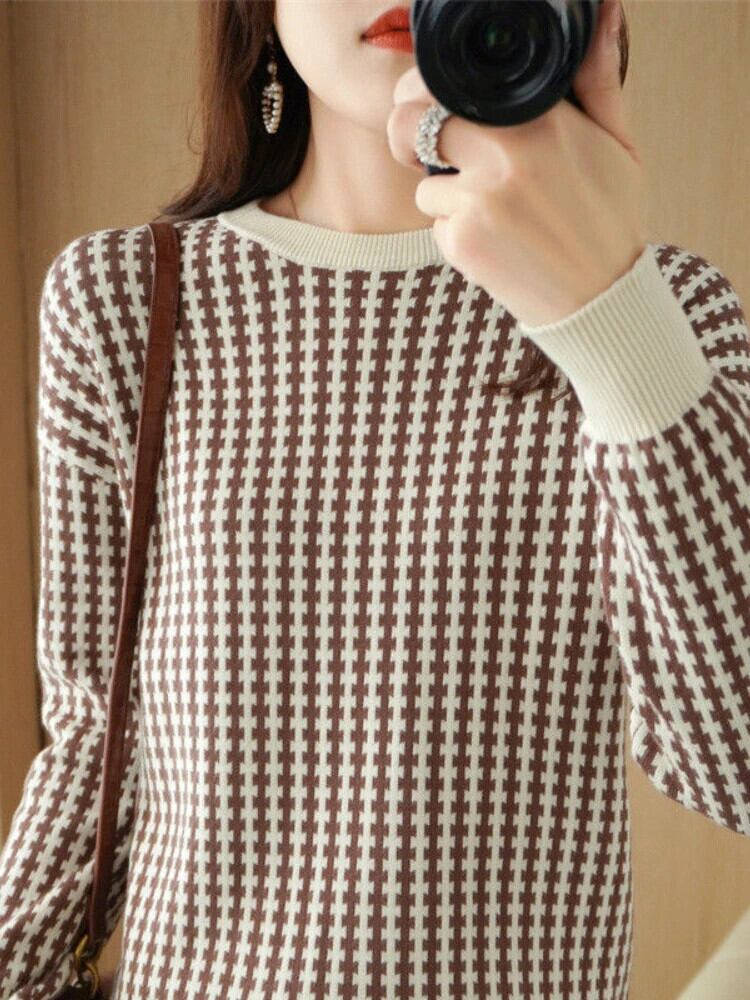 送料無料 セーター女性 2023 長袖トップレトロジャンパー O ネックニットプルオーバー秋冬ルーズ固体セーター ロング オータム 秋物 ウィンター 冬物 Oネック ソリッドカラー AE0807747174731667