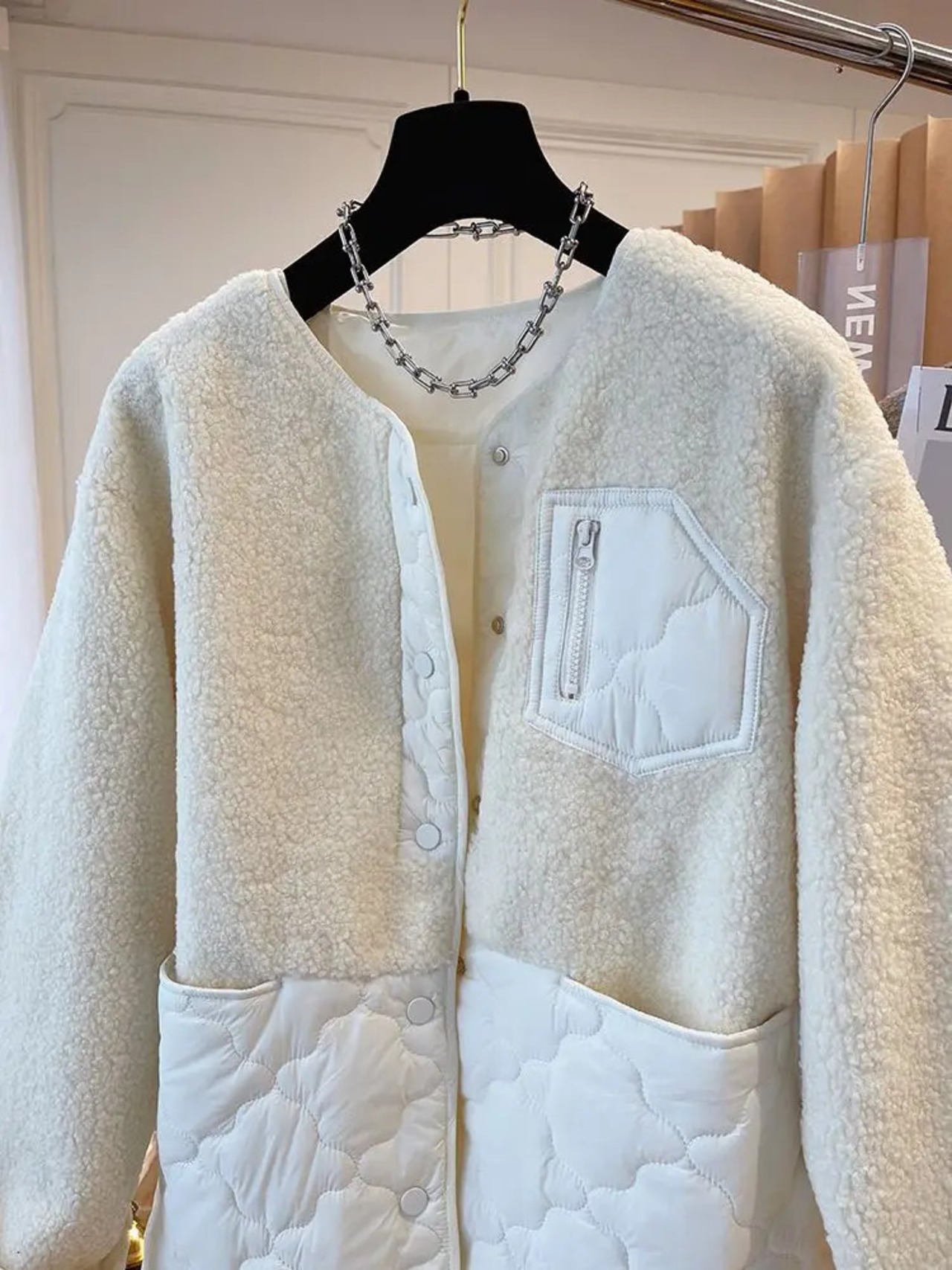送料無料 冬服女性ジャケット女性ラムウールコート V ネックルーズオーバーサイズパーカー長袖トップコート ロング ウィンター 冬物 Vネック AE0807784926154263 | 女性の為の通販サイト-fashion navi
