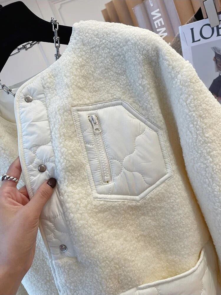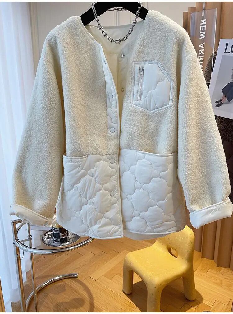 送料無料 冬服女性ジャケット女性ラムウールコート V ネックルーズオーバーサイズパーカー長袖トップコート ロング ウィンター 冬物 Vネック AE0807784926154263