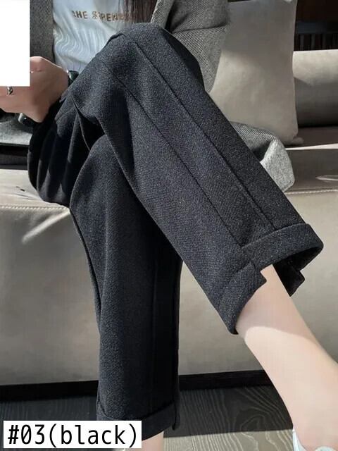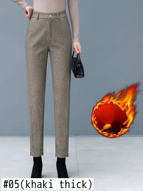 送料無料 冬厚みの女性ウールパンツ 2023 ハーレムズボンルーズヘリンボーン暖かいクロップドパンツストリート ウィンター 冬物 AE080775885119460
