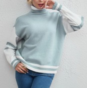 送料無料 暖かい女性 Pulovers 2023 秋冬カラーブロック長袖タートルネックニットセーター女性のルーズストリート ロング オータム 秋物 ウィンター 冬物 AE0807749428700232
