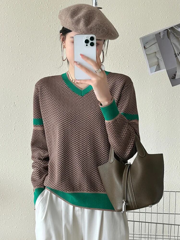 送料無料 女性セーター 2023 秋冬暖かいプルオーバー V ネックジャンパー長袖トップヴィンテージニット ロング オータム 秋物 ウィンター 冬物 Vネック ビンテージ AE0807798757992970 | 女性の為の通販サイト-fashion navi