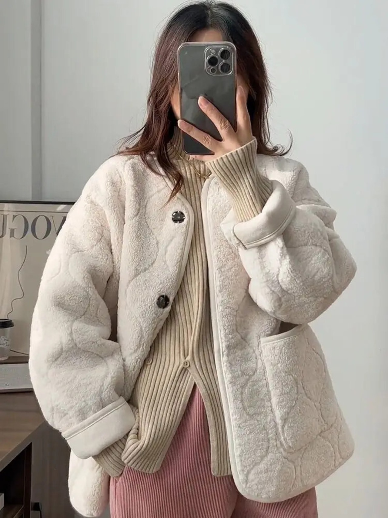 送料無料 冬服の女性のジャケット女性ラムウールコートアウタールーズオーバーサイズ厚いパーカー長袖トップコート ロング ウィンター 冬物 AE0807799171446732