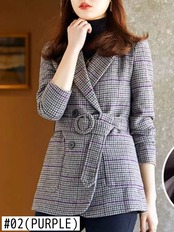 送料無料 秋の女性ジャケット 2023 シックなパープルコートオーバーサイズオフィスレディチェック柄ベルトブレザー女性トップ オータム 秋物 ハーネス 会社 学校 通勤や通学にも AE0807762447880405 | 女性の為の通販サイト-fashion navi