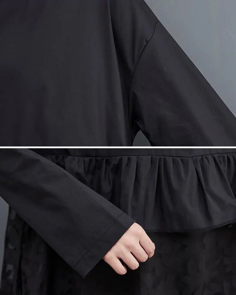 送料無料 女性ドレス春夏 O ネックブラックドレスプルオーバー長袖ドレス女性ルーズローブ ロング スプリング 春物 サマー 夏物 Oネック AE0807731506658984
