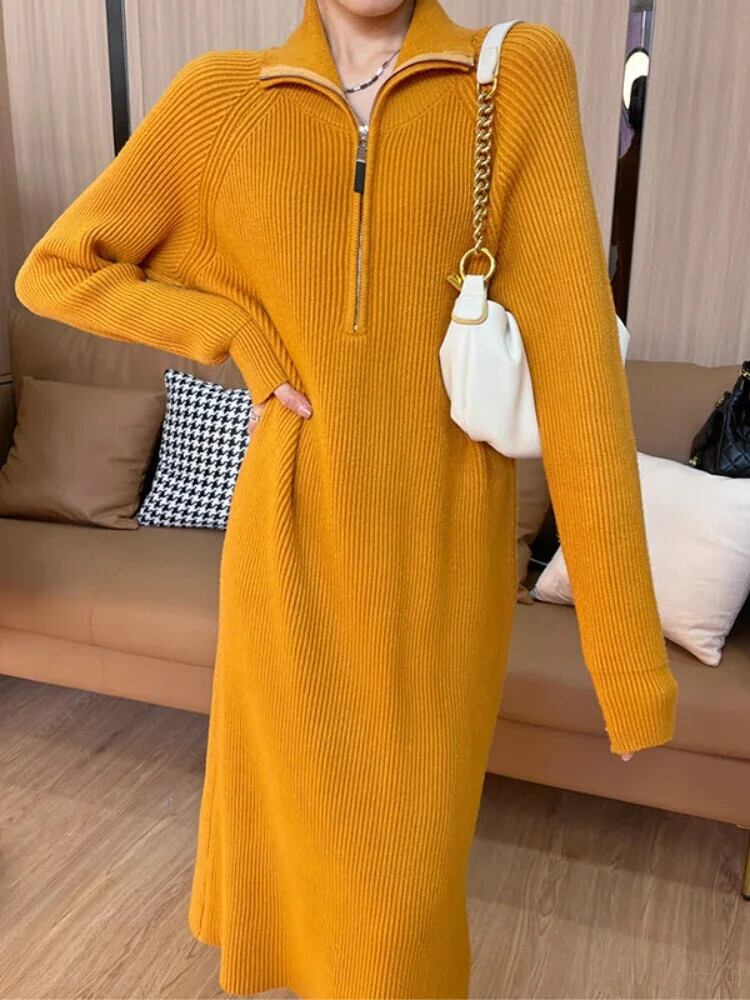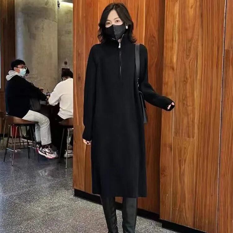 送料無料 ドレス女性 2023 オーバーサイズセータージッパーソリッドニットドレス冬のセーター女性のローブ ウィンター 冬物 ソリッドカラー AE0807741181088377