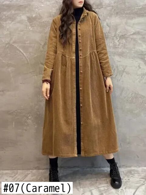 送料無料 コーデュロイコート冬秋長袖トレンチヴィンテージドレスルーズ女性のシングルブレスト固体ローブ ロング オータム 秋物 ウィンター 冬物 ソリッドカラー ビンテージ AE080771739486235
