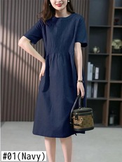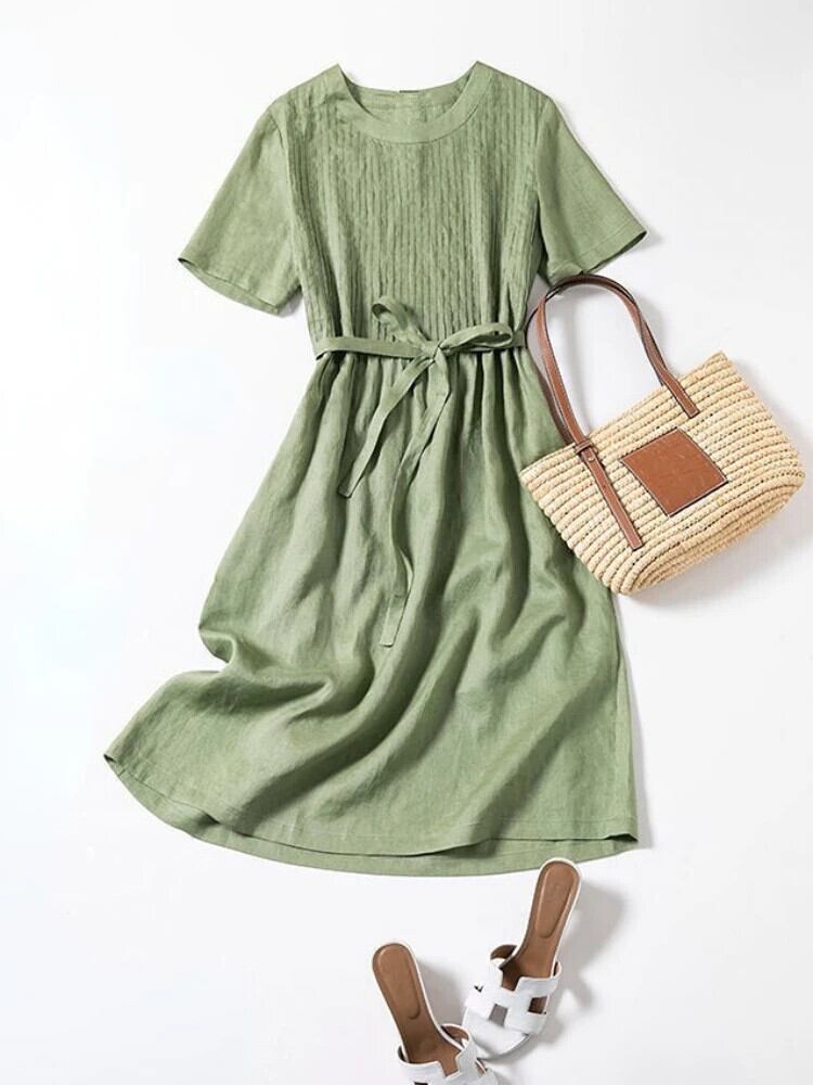送料無料 夏の女性のドレス 2023 気質 O ネックレジャールーズ膝丈ロングドレス女性 サマー 夏物 Oネック AE0807782933685717