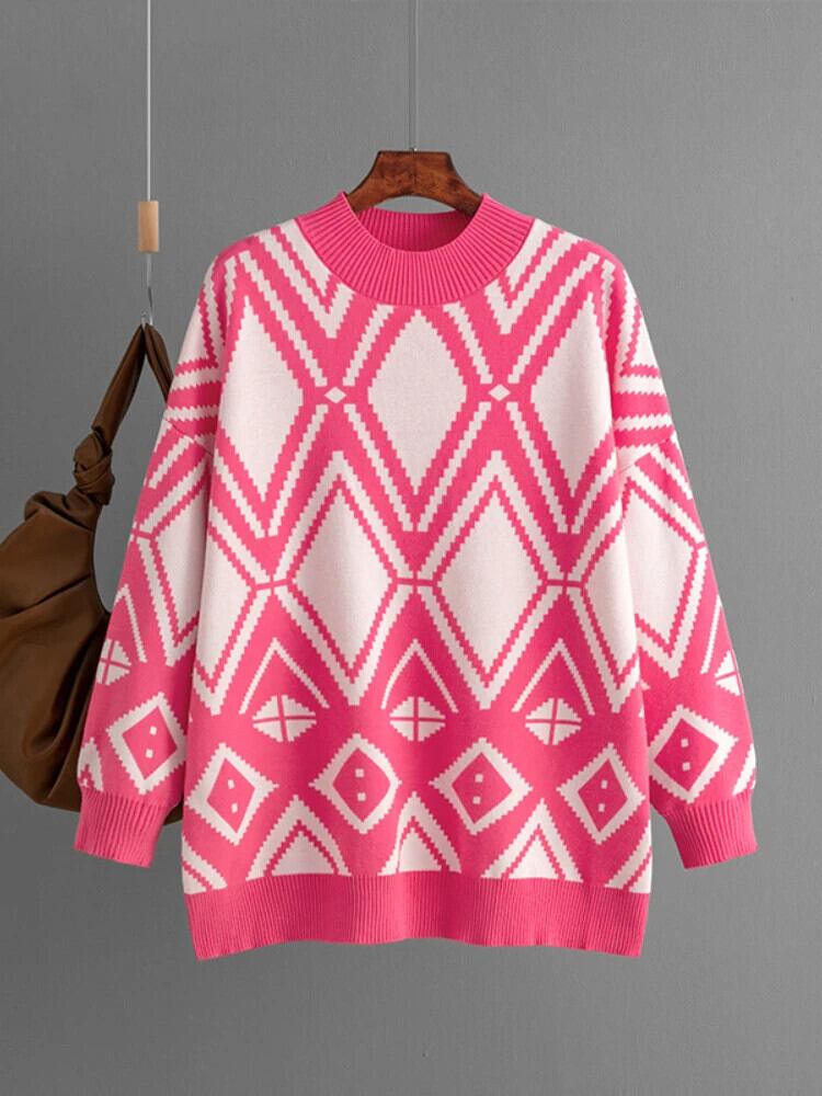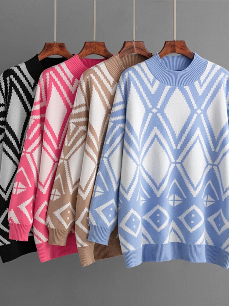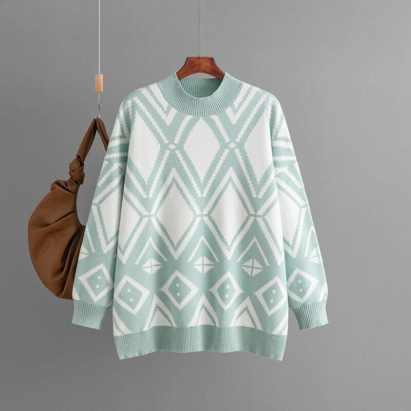 送料無料 女性セーター 2023 秋冬 O ネックプルオーバー長袖トップストリートヴィンテージ対照的なジャンパー ロング オータム 秋物 ウィンター 冬物 Oネック ビンテージ AE0807750399916028