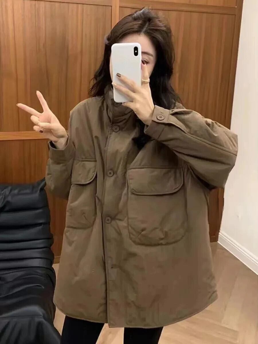 送料無料 冬のジャケットの女性 2023 コートヴィンテージジャケットシングルブレストストリート長袖トップルーズキルティングジャケット ロング ウィンター 冬物 ビンテージ AE0807739831966536