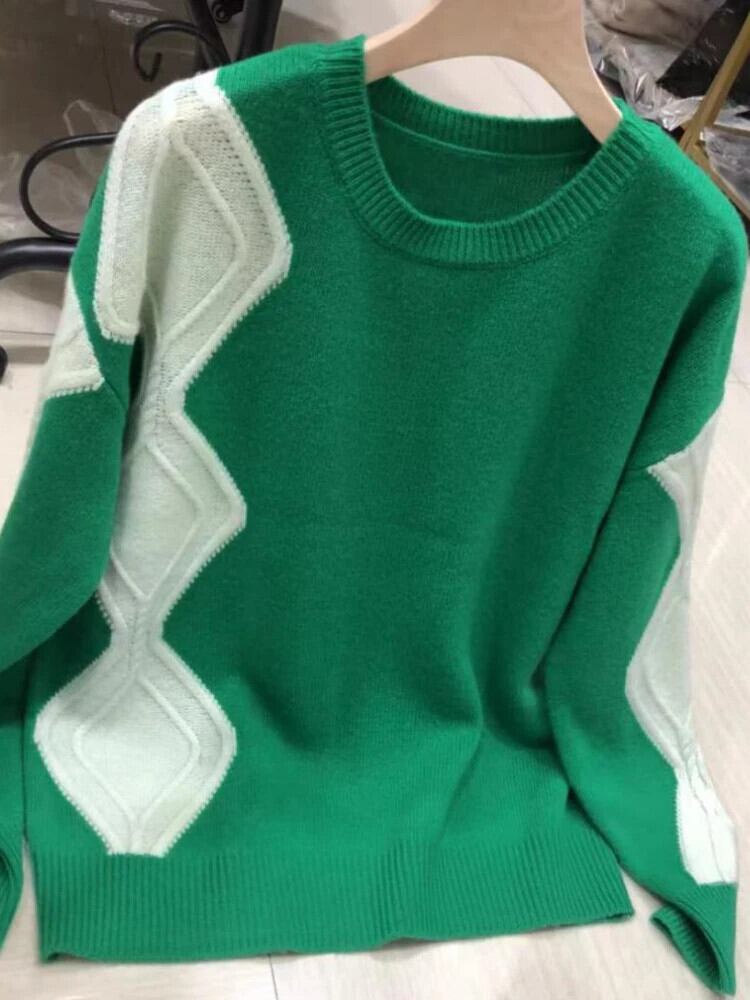 送料無料 女性セーター 2023 秋冬ニットプルオーバー長袖トップストリートルーズ対照的な色ヴィンテージジャンパー ロング オータム 秋物 ウィンター 冬物 ビンテージ AE0807710862154259