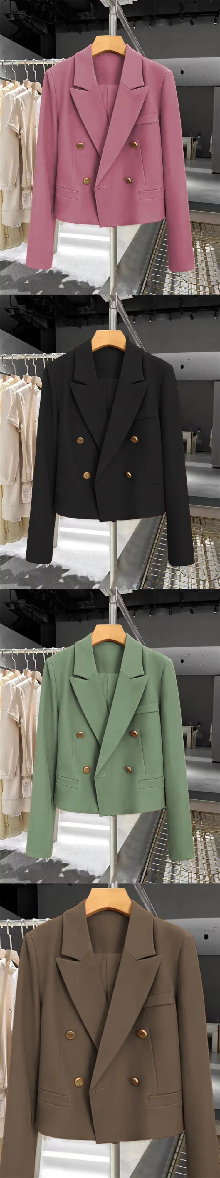 送料無料 クロップドブレザー女性トップ春スーツオフィスルーズジャケットグリーンコート女性チャケータデ スプリング 春物 会社 学校 通勤や通学にも AE0807756503449091