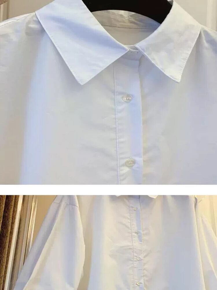 送料無料 2023 ヴィンテージシャツフレンチオーバーサイズバブルスリーブルーズパネルブラウス無地婦人服トップシャツ ソリッドカラー ビンテージ AE0807762328259750