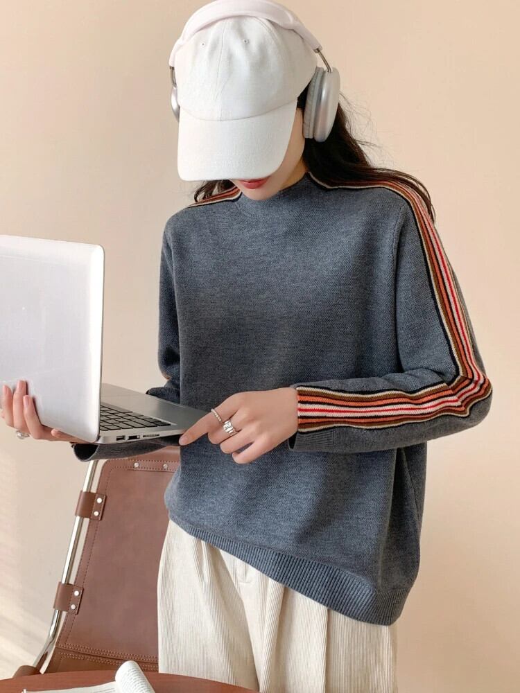 送料無料 冬の女性のプルオーバーソリッドモックネックセータールーズトップスレディースニットジャンパー ウィンター 冬物 ソリッドカラー AE0807725142855931