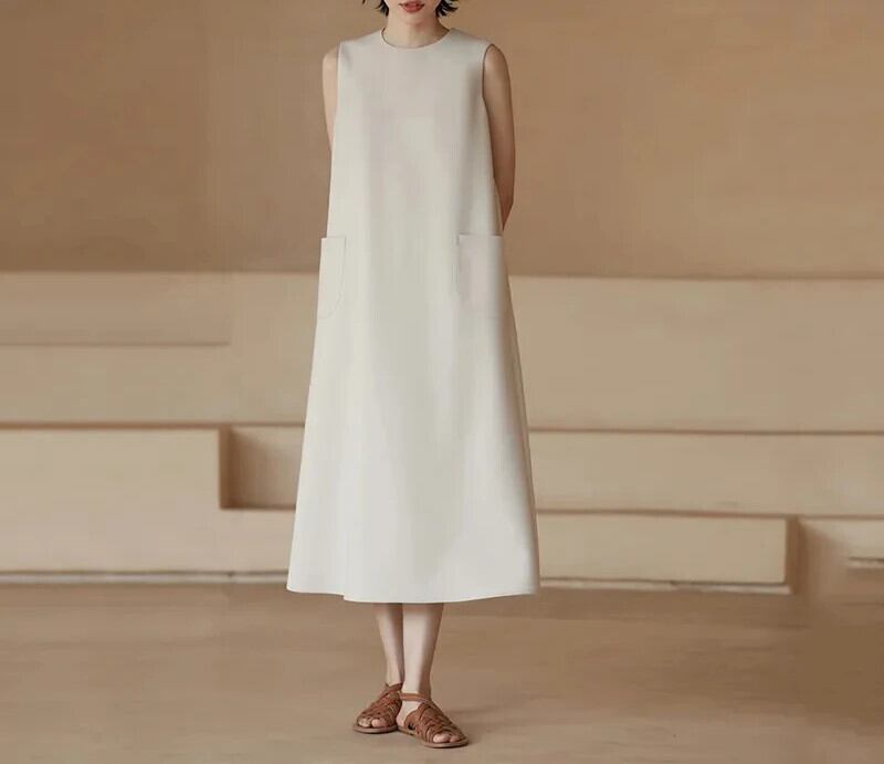 送料無料 ドレス女性 2023 夏固体ルーズ O ネックドレスストリートヴィンテージドレス特大ノースリーブ mal ロングドレス サマー 夏物 Oネック ソリッドカラー ビンテージ AE0807735254849023