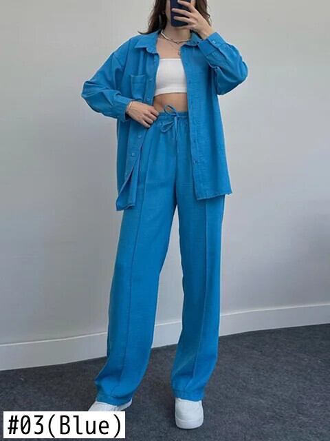 送料無料 女性のトラックスーツ春夏特大シャツワイドレッグウエストパンツ 2 点セット女性の衣装ソリッドセット スプリング 春物 サマー 夏物 ワイドパンツ ソリッドカラー AE0807761639216641