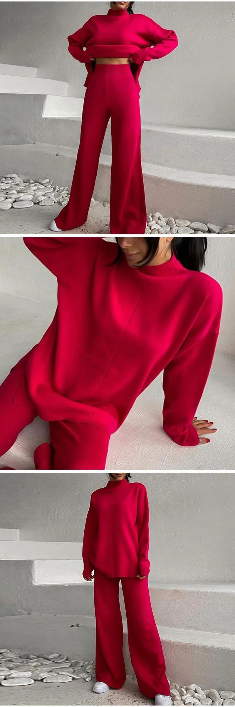 送料無料 2023 秋冬 2 点セットレディース衣装ルーズニットプルオーバー襟セーターパンツセットストリート オータム 秋物 ウィンター 冬物 AE0807763685729990