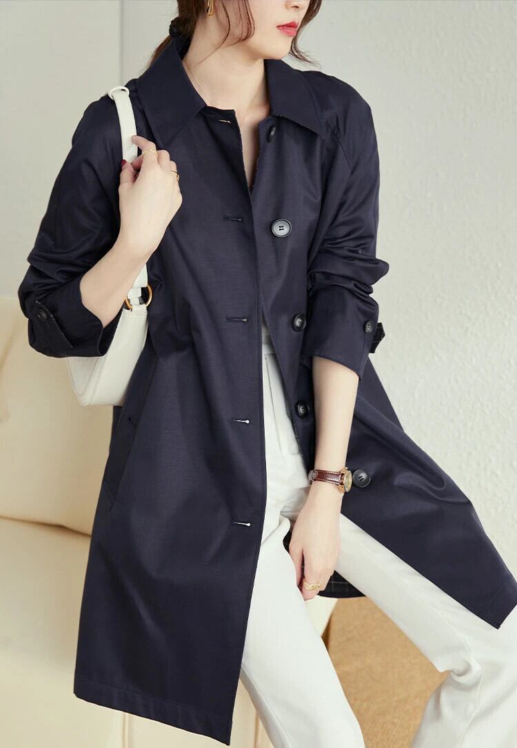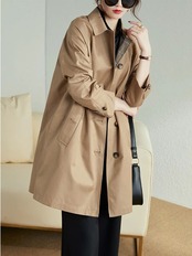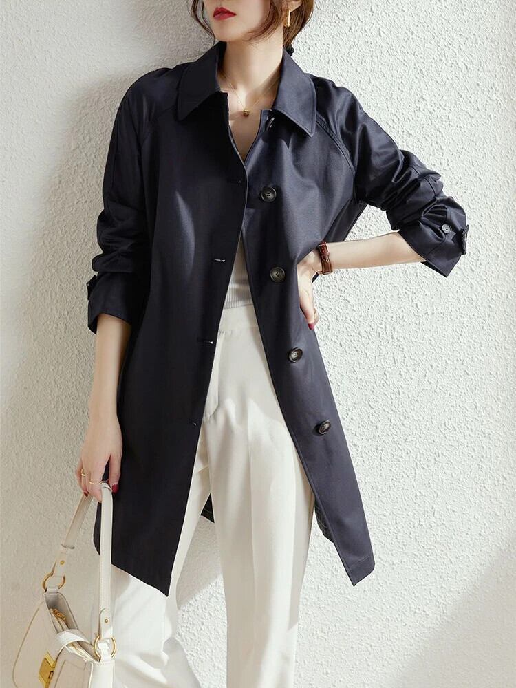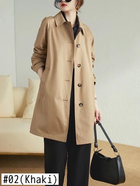送料無料 秋の女性無地ラペルシングルブレスト長袖ウインドブレーカー女性のワークジャケットトレンチコート女性アメリカトップス ロング オータム 秋物 ソリッドカラー AE0807749472290776