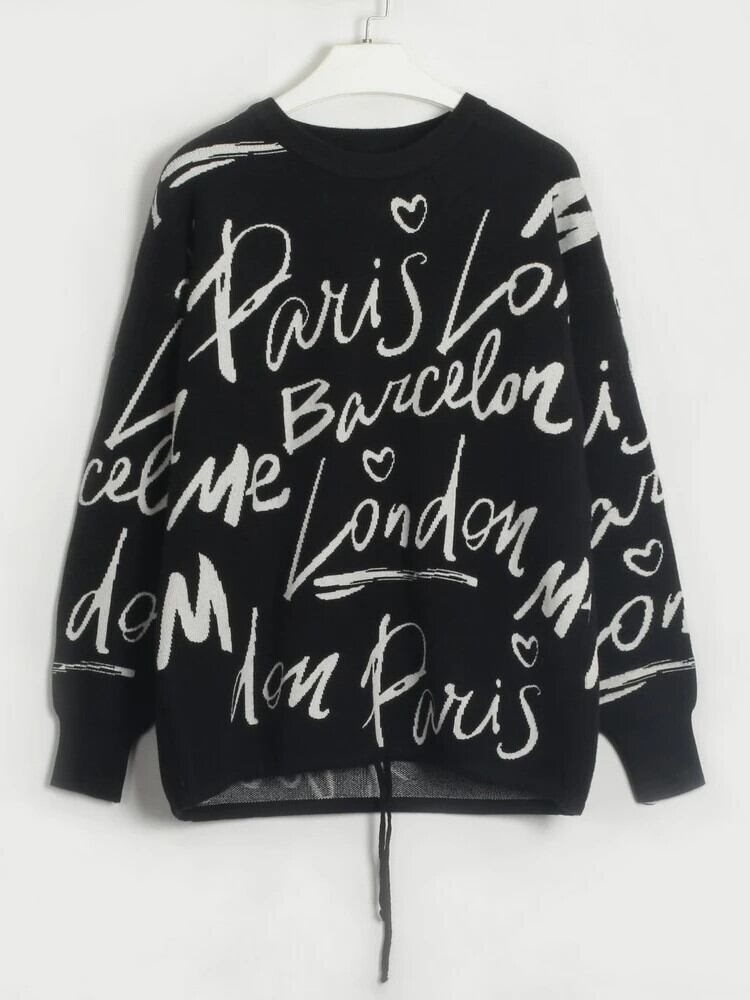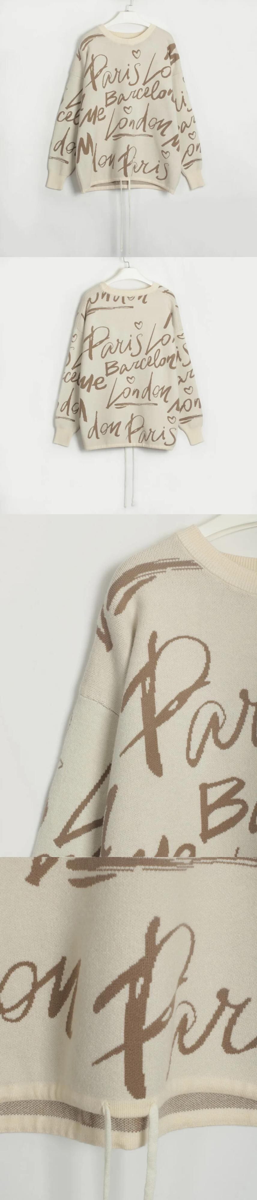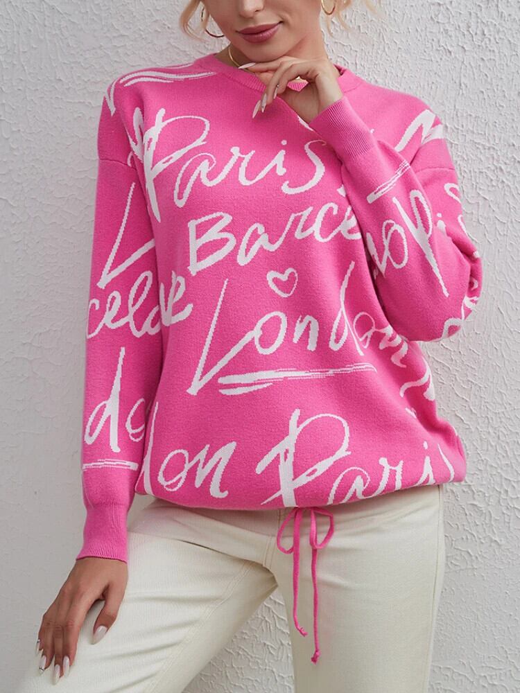 送料無料 女性の冬のブラウス 2023 女性のセーター O ネックプルオーバーレター長袖トップレースアップジャンパー ロング ウィンター 冬物 Oネック AE0807790516348698