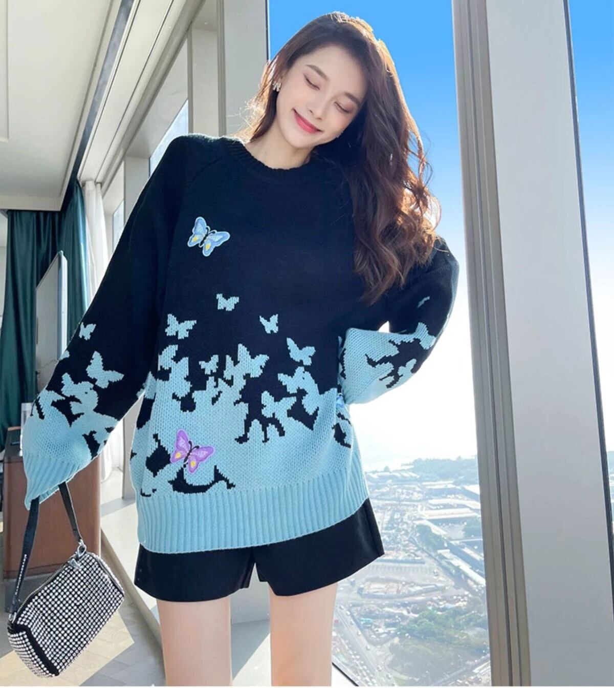 送料無料 セーター女性の冬 2023 ルーズ O ネックジャンパー厚い長袖ニットトッププルオーバーヴィンテージ特大セーター女性 ロング ウィンター 冬物 Oネック ビンテージ AE0807761294235239