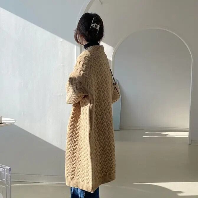 送料無料 コート女性の冬 2023 グリーンニットカーディガンヴィンテージルーズレジャーロング厚いドレスセーター暖かいジャケット特大カーディガン ウィンター 冬物 ビンテージ AE080778144144751