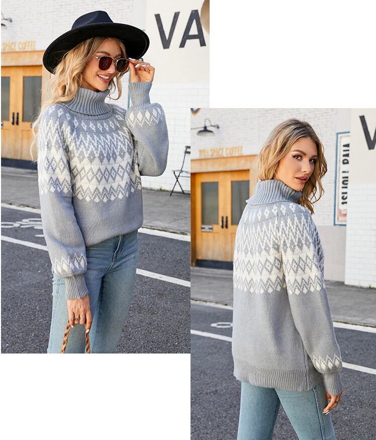 送料無料 冬服女性セータータートルネックルーズオーバーサイズプルオーバー長袖トップニットプル厚いセーターストリート ロング ウィンター 冬物 AE0807782219236361