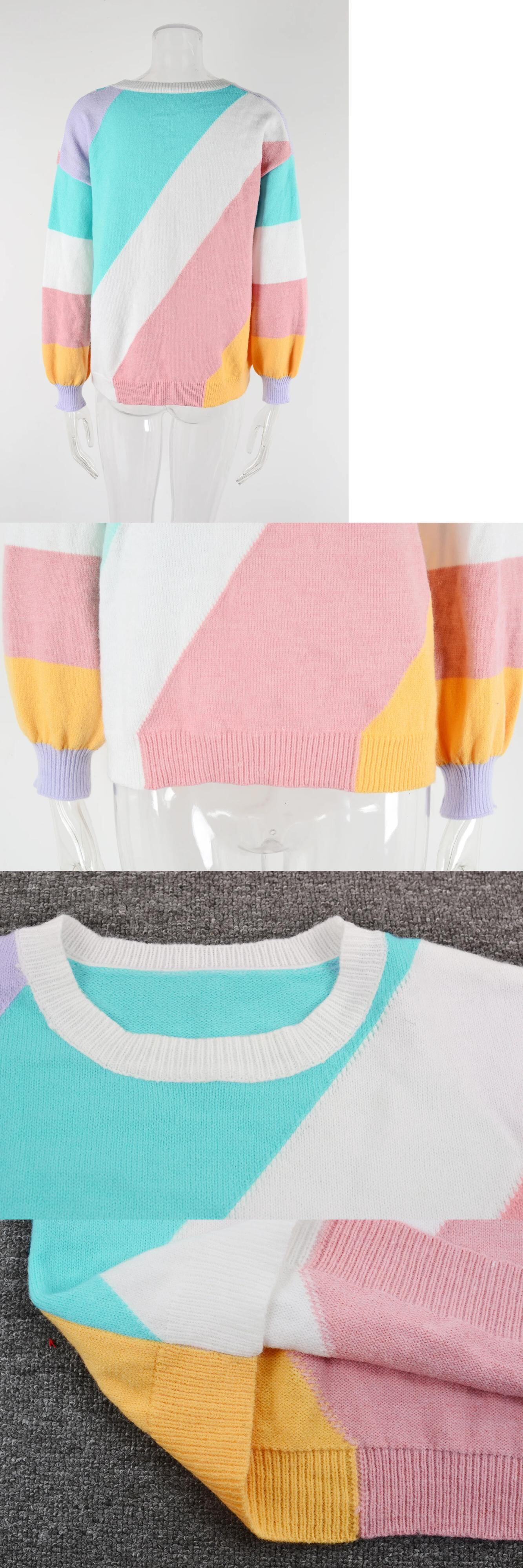 送料無料 女性秋冬暖かいセーター厚いニットレディースルーズプルオーバーヴィンテージ対照的な特大ジャンパー O ネックトップ オータム 秋物 ウィンター 冬物 Oネック ビンテージ AE0807795038975568