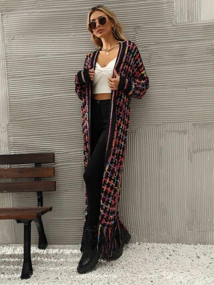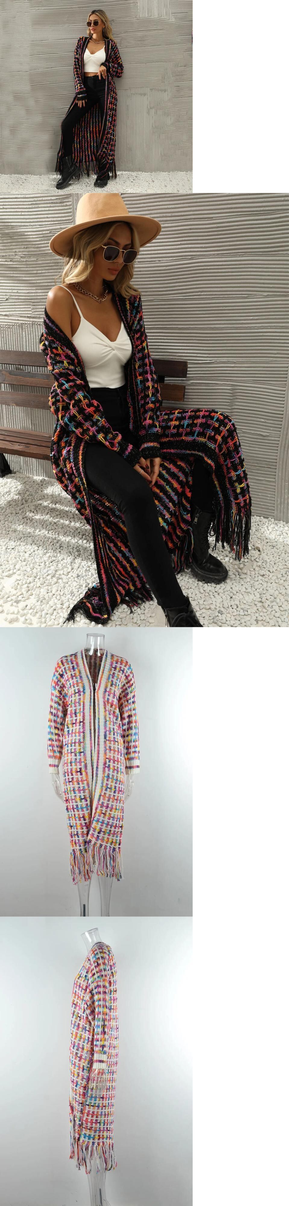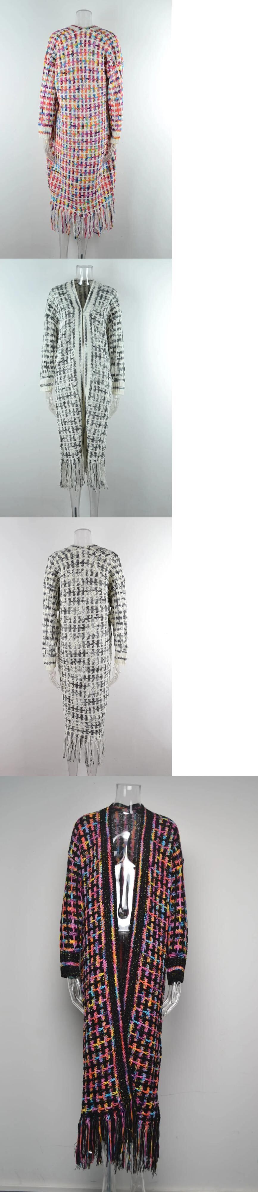 送料無料 女性セーター 2023 秋冬チェック柄 V ネックロングニットカーディガンニット女性の特大カーディガントップス オータム 秋物 ウィンター 冬物 Vネック AE0807799929584381