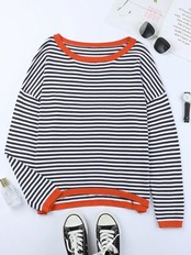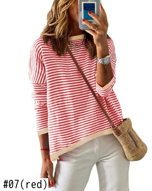 送料無料 セーター女性 2023 秋冬ルーズレジャーニット O ネック長袖トップストリートストライプニットプルオーバー ロング オータム 秋物 ウィンター 冬物 Oネック AE0807769634363379